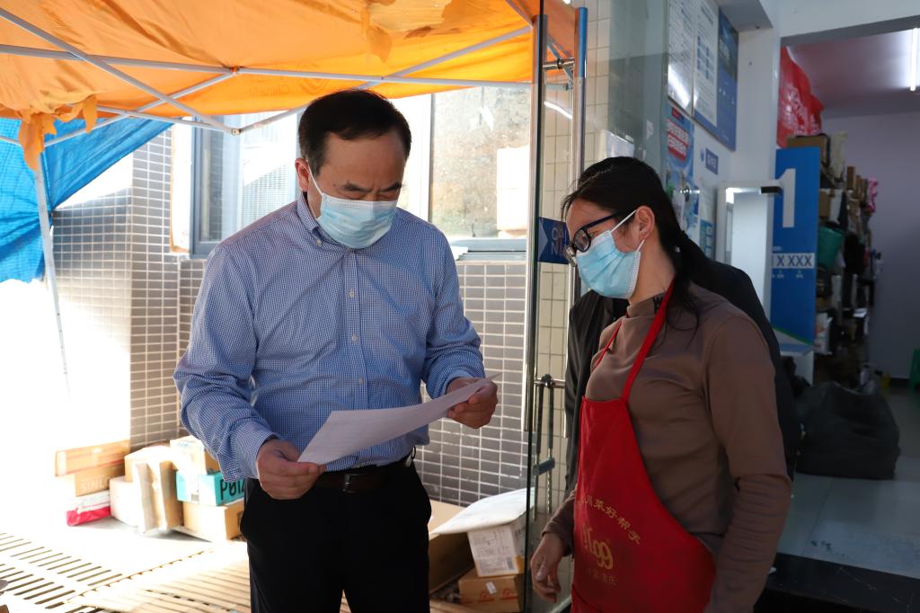 在海棠苑菜鸟驿站,李廷勇、张伟强调,学校菜鸟驿站是连接校园和社会的重要关口,一定要保持环境整洁,每天定期消毒,并做好消毒记录。驿站工作人员要做好核酸检测,确保健康。