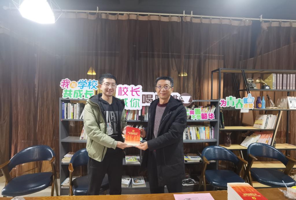 张伟还向同学们赠送《党的十九届六中全会< 决议>学习辅导百问》一书。大家纷纷表示,这杯“咖啡”喝得暖心安心、走心走实,今后将继续用奋斗书写青春亮丽的底色,勇担时代重任,做向上向善的有为青年。