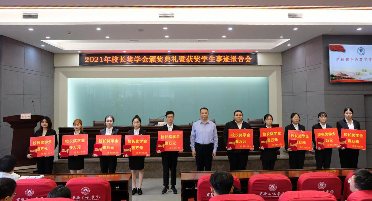 臧小林向获奖学生表示衷心祝贺,为每位获奖学生颁发校长奖学金荣誉证书,并与他们合影留念。他希望受表彰的同学珍惜荣誉,戒骄戒躁,再接再厉,充分发挥模范带头作用,希望全校同学汲取榜样力量,激发前行动力,传承红色基因,加强自我修养,刻苦学习,全面发展,争做向上向善、勇于攀登的三峡学子。