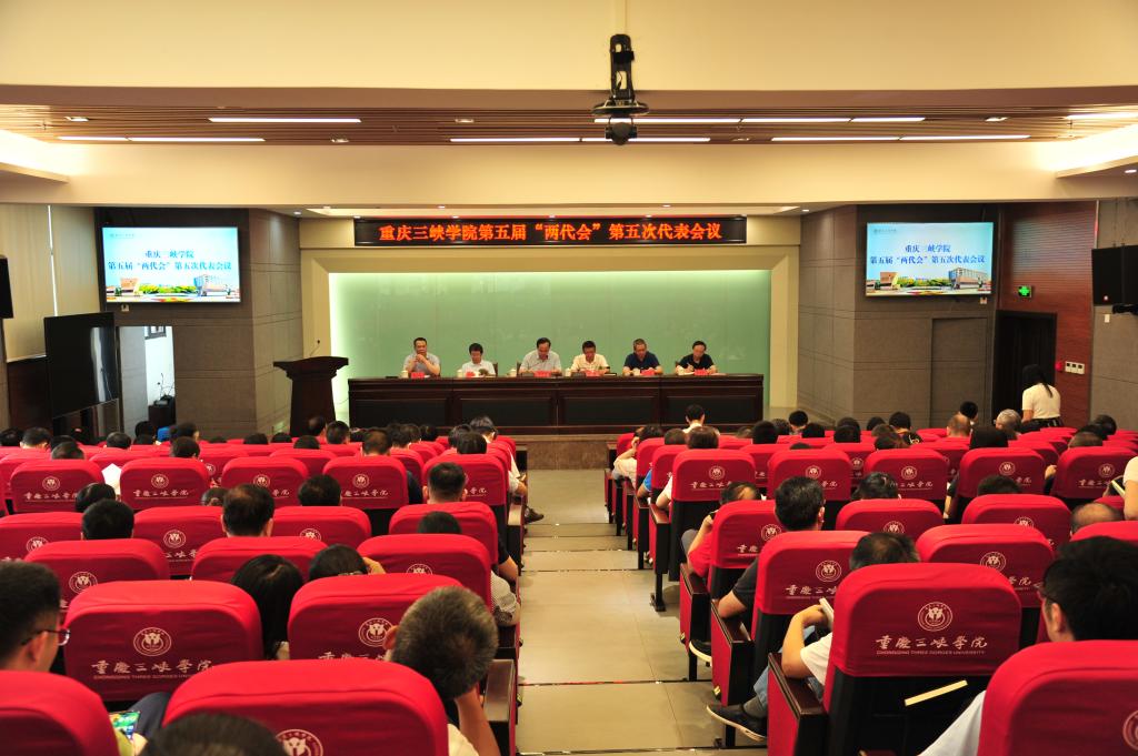 7月8日下午,学校第五届“两代会”第五次代表大会在连廊会议室举行。学校校长张伟,副校长祁俊生、陈文昆、臧小林,纪委书记李金斌出席会议、第五届“两代会”正式代表、全校副处级以上干部共76人到会,会议由党委书记李廷勇主持。