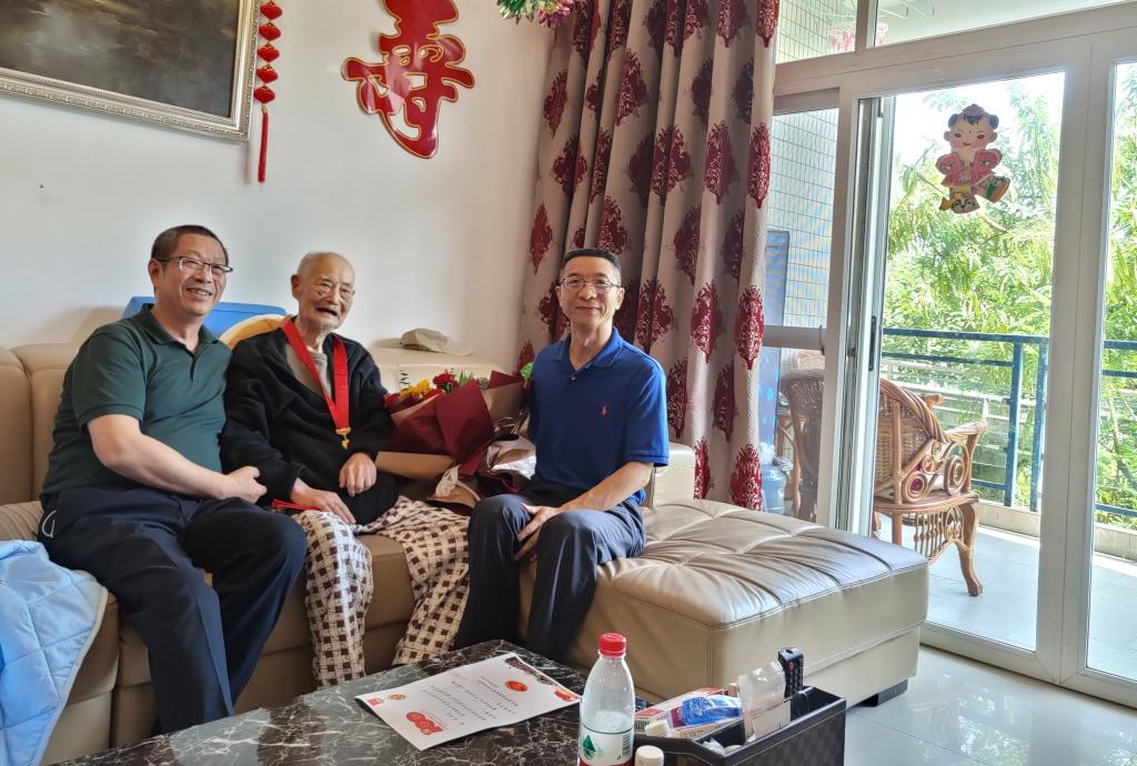 慰问小组一行来到离退休老干部陈立家中,为他送去“光荣在党50周年”纪念章。当天,正值陈立老人百岁寿辰,慰问小组把为他准备的生日蛋糕、鲜花送到他的手上,祝老人健康长寿、晚年幸福。