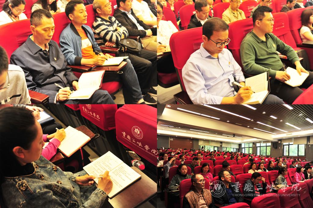 学校党委理论学习中心组成员、副处级以上干部、专职组织员、基层党支部书记、“青马工程.菁英团校”第17期大学生骨干等共200余人听取讲座。