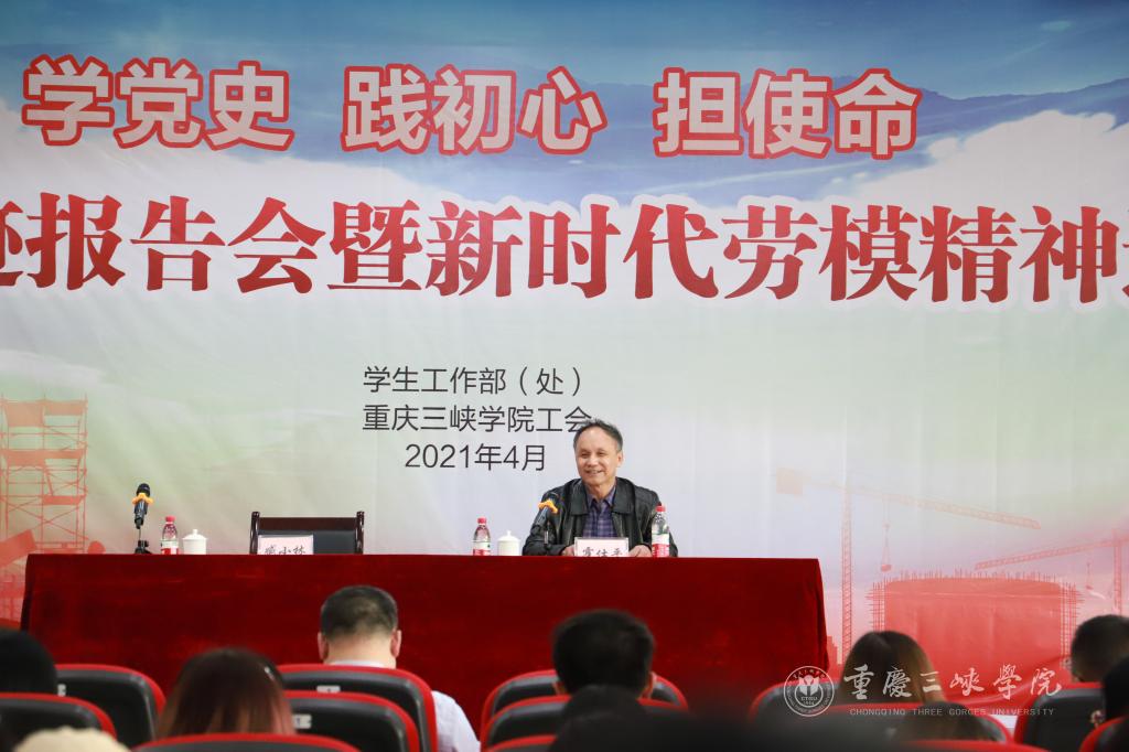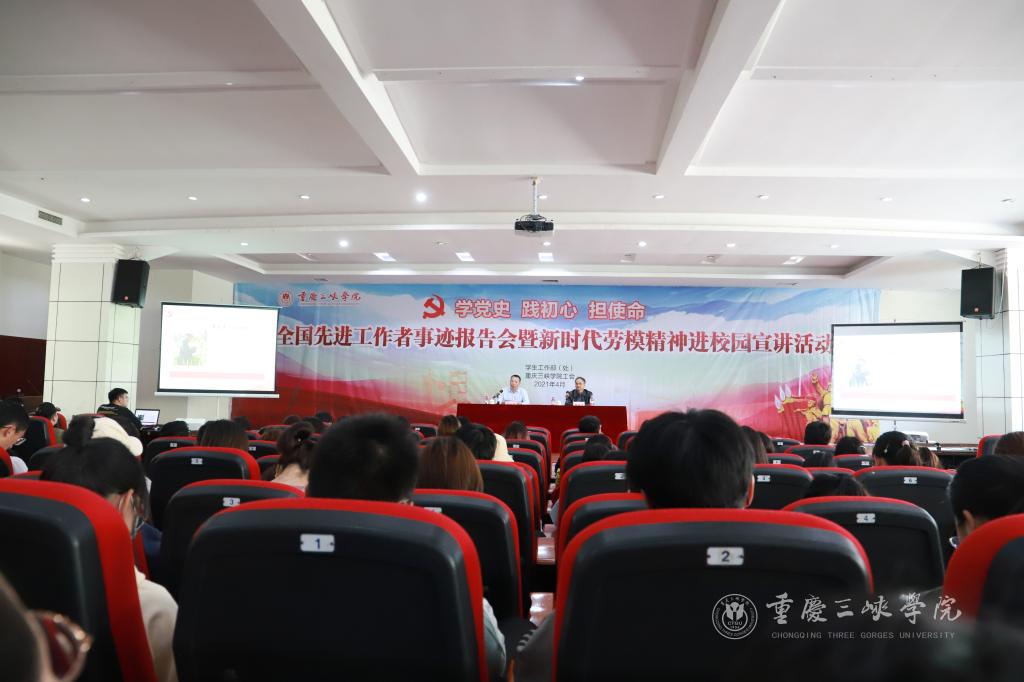 认真学党史,勇开新局面;致敬劳动者,建功新征程。4月22日下午,由学生工作部、校工会主办的全国先进工作者事迹报告会暨新时代劳模精神进校园宣讲活动在明辨楼2栋104报告厅举行,党委常委、副校长臧小林出席活动并主持报告会,学生处职工、工会干部、辅导员和学生代表近500人聆听报告会。