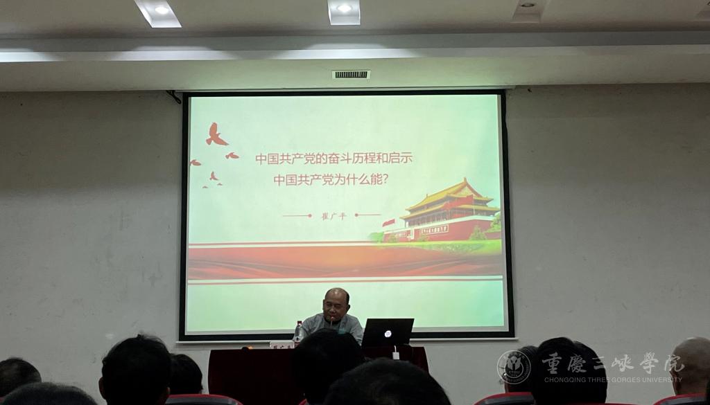 4月28日晚,学校党委副书记崔广平以“中国共产党的奋斗历程和启示——中国共产党为什么能”为题为所在支部和联系学院师生党员讲授专题党课。
