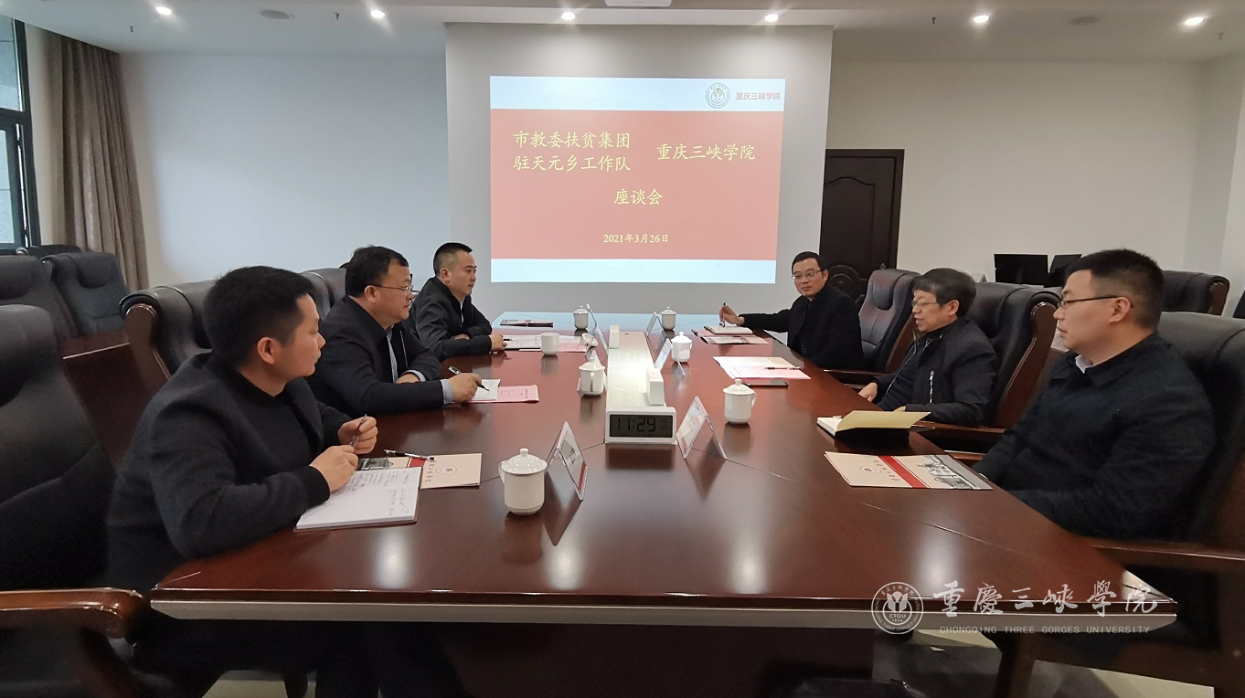 3月29日上午,重庆市教委扶贫集团驻天元乡工作队队长左益一行8人来校交流扶贫工作。学校副校长、龙驹镇驻镇工作队队长祁俊生,龙驹镇驻镇工作队副队长骆孟鑫、统战部副部长鄢沛参加交流会,会议由祁俊生主持。