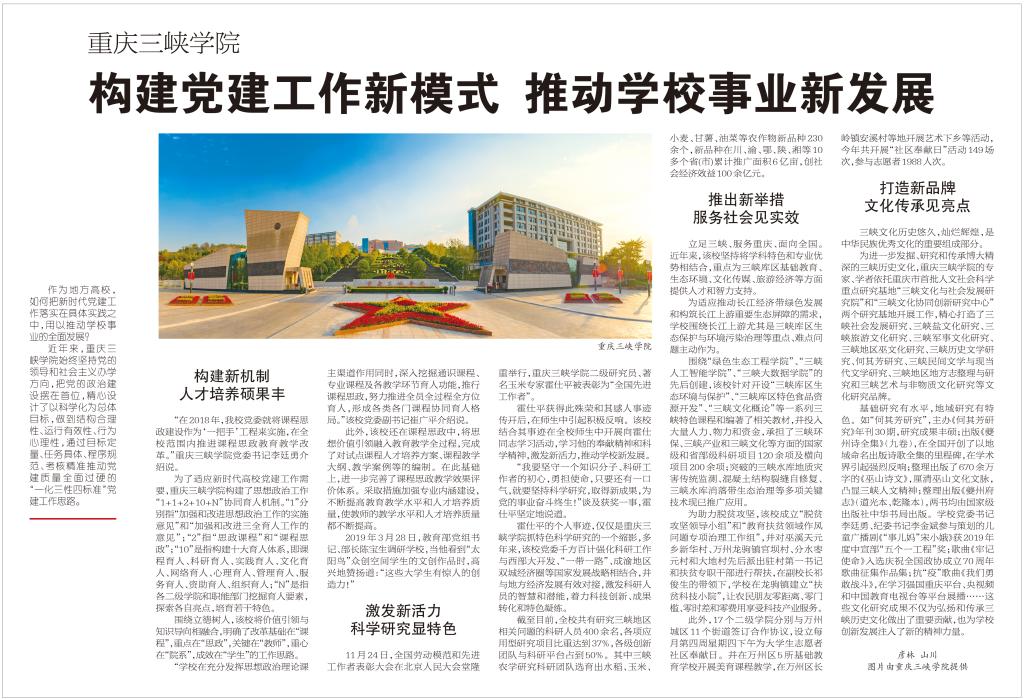 12月18日,《重庆日报》“教育观察”栏目刊发《构建党建工作新模式 推动学校事业新发展》,对开元官网党建工作进行了专题报道。