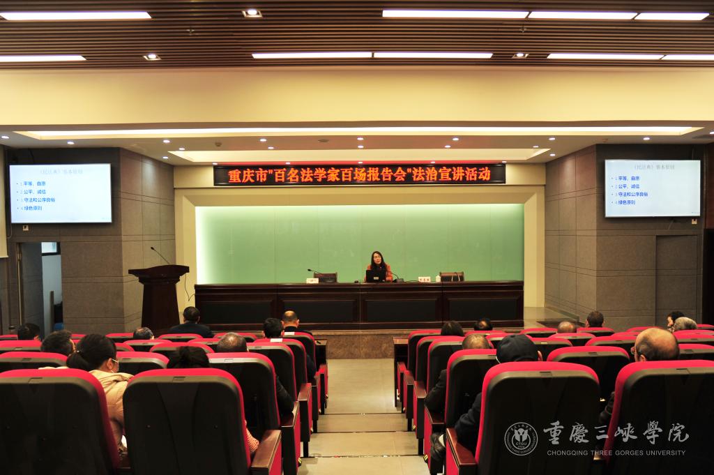今年8月,市委组织部、市委宣传部、市委政法委、市教委、市司法局、市法学会联合发文,要求在全市范围内认真开展民法典宣讲活动。11月26日,学校邀请到了重庆市“百名法学家百场报告会”法治宣讲活动宣讲团成员、重庆工商大学法学院李喜燕教授来校作民法典宣讲专题讲座。