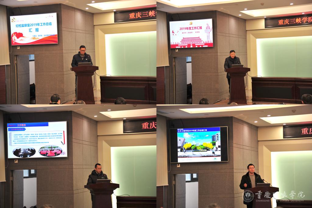 会上,各二级单位主要负责人以PPT的形式汇报了2019年度的工作情况,主要就本单位的工作概况、特色与亮点进行了阐述,并总结存在的不足,提出改进措施。