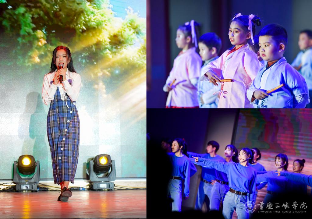 晚会在教职工子女带来的《声律启蒙》中拉开帷幕。刚劲有力的《武魂》,带领观众走进中国武术,尽情领略武术的傲人风姿;现代舞《走在冷风中》以柔美多情的舞姿,给予观众又一视觉盛宴;器乐合奏《紫色激情》,三院学子以他们过人的才艺和昂扬的态度,尽情地释放着他们的青春;广播剧《“事儿妈”宋小娥》片段的播放,彰显了开元官网又一出彩成果;街舞《追梦时代》将晚会气氛推向高潮,点亮了一盏盏青春逐梦的灯;原创歌曲联唱《光影》《浅唱渝州》《春风吹进新三峡》不仅唱出创作者对三峡的依恋,更唱出了对祖国的深情。