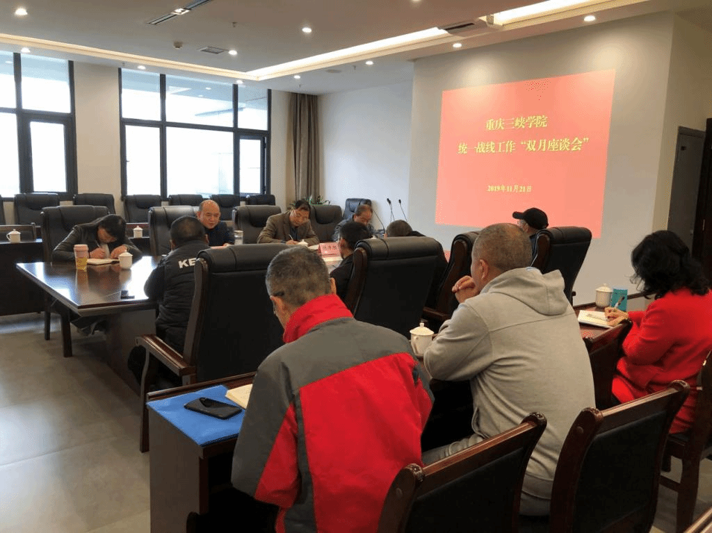 11月21日下午,学校统一战线工作双月座谈会在科技楼819会议室举行。学校各民主党派、统战团体负责人及代表参加会议。党委副书记崔广平,党委常委、组织部(统战部)部长陈孝胜出席会议。会议由陈孝胜主持。
