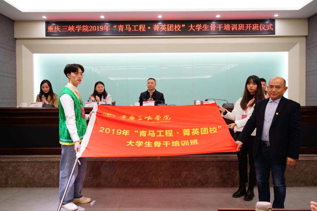 11月6日下午,2019年“青马工程·菁英团校”大学生骨干培训班在科技楼二楼连廊会议室开班。共青团重庆市委党组成员、副书记江光伟,学校党委常委、副书记崔广平,学校党委组织部副部长孙国英,重庆市学生联合会驻会主席曹文栋出席。校团委副书记熊贞贞主持开班。