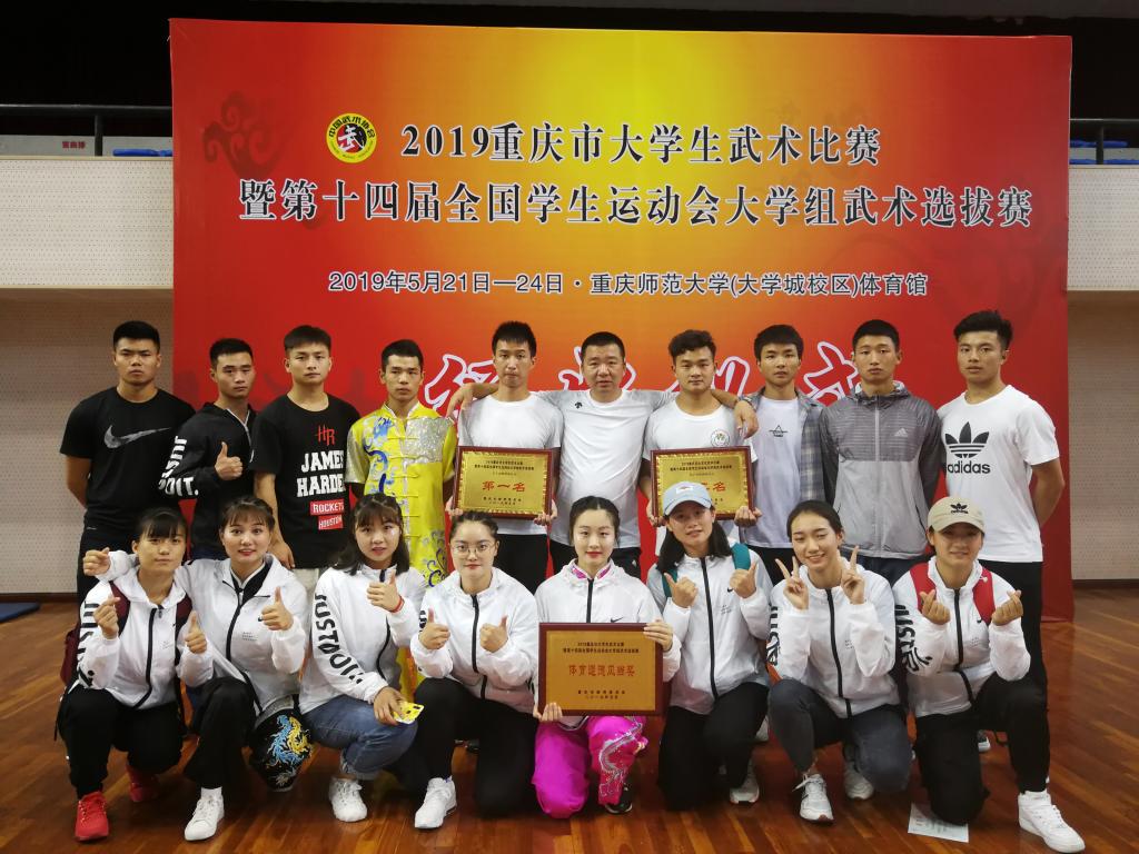 近日,由重庆市教委主办的“2019年重庆市大学生武术比赛暨第十四届全国学生运动会大学组武术选拔赛”在重庆师范大学举行。经过顽强拼搏,开元官网武术代表队获得大学丙组女子团体第一名,男子团体第二名,蝉联体育专业组团体总分十二连冠,获评体育道德风尚奖,实现了运动竞赛和精神文明双丰收。