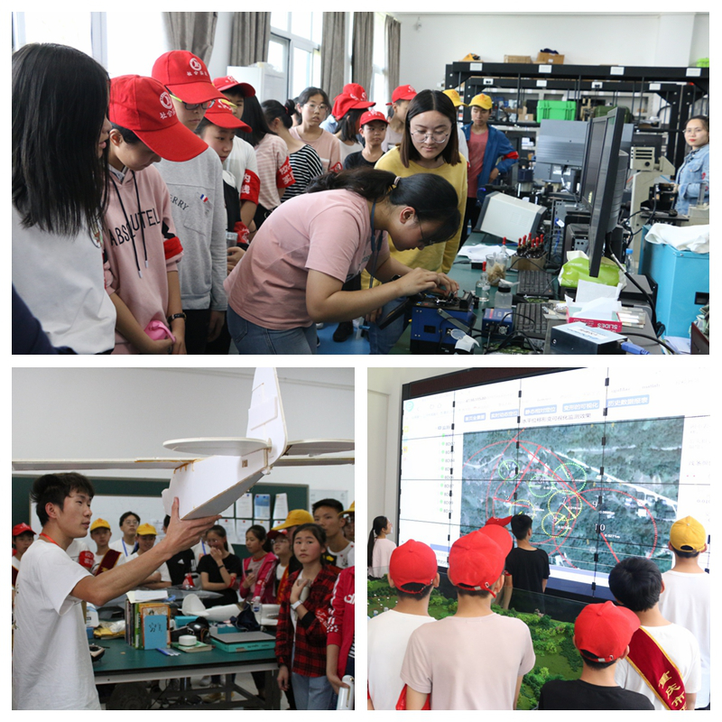 万中学子一行分别对光纤微加工与传感实验室、地质雷达监测研究实验室、用于搭载空中小型化公共安全监测设备的无人机团队(AOD实验室)、电子信息类创新实验室进行了参观。