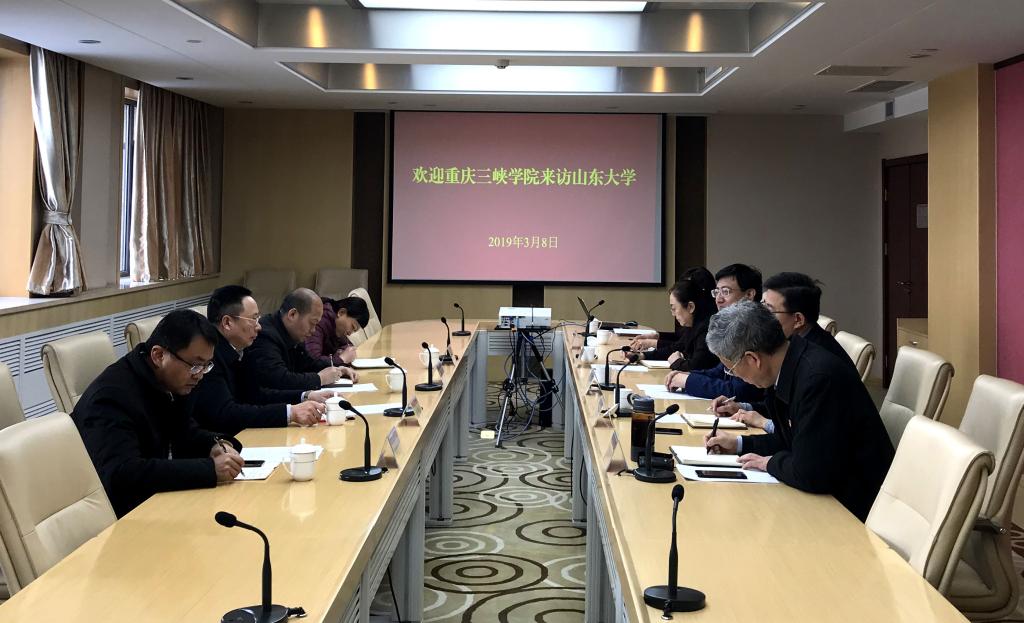 为落实重庆市政府与山东大学校地合作工作要求,3月7日至8日,学校副校长谭明术率科研处、教务处和对外合作与交流处等部门负责人赴山东大学交流洽谈。