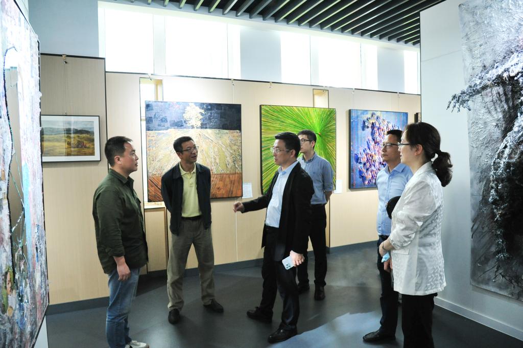 当日下午,李劲渝察看校园环境、参观美术学院毕业生作品展,随后举行了座谈会。