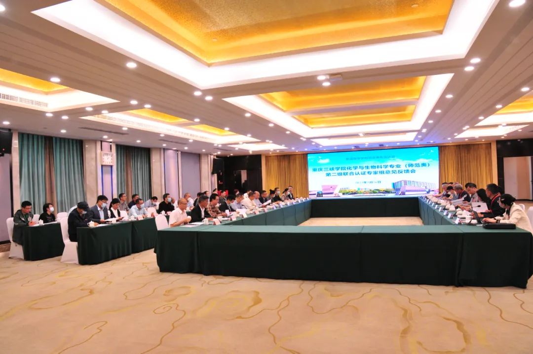 联合认证专家组组长、化学专业专家组组长朱家存,生物科学专业专家组组长张顺利等专家组成员,重庆市教育委员会师范教育处副处长王晋,重庆市教育评估院高等教育评估所副所长田腾飞,校党委书记李廷勇,校长张伟,党委副书记崔广平,副校长陈文昆、臧小林、付川;相关职能部门负责人、教师教育学院领导及专业教师代表、部分师范专业学院领导参加会议。