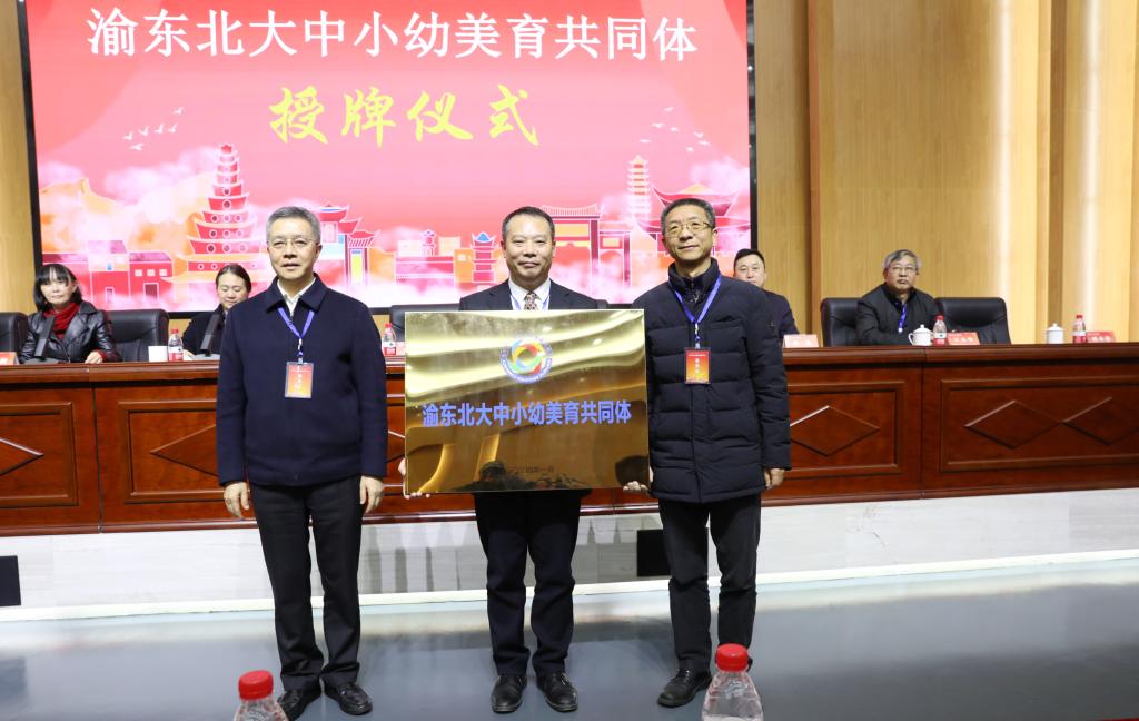 期间,蔡其勇、张伟和刘勇、王小华分别为渝东北大中小幼美育共同体、渝东北大中小幼美育共同体成员单位授牌。