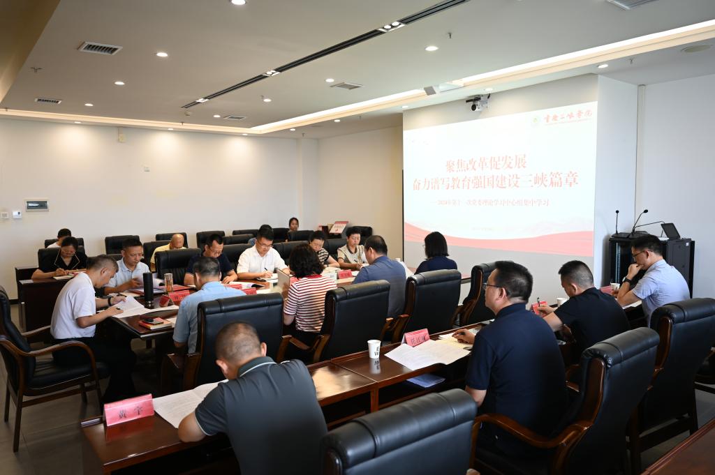 会议集中学习了习近平总书记在全国教育大会上的重要讲话、中共中央国务院关于弘扬教育家精神加强新时代高素质专业化教师队伍建设的意见、中国共产党重庆市第六届委员会第六次全体会议决议等内容。党委常委、副校长郭作飞作中心发言;党政办主任黄宇、科研处处长周科、生物与食品工程学院院长肖国生、机械工程学院院长赖于树作交流发言。
