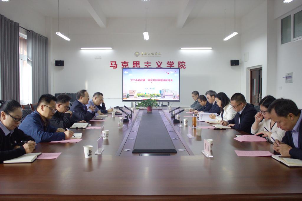 马克思主义学院院长徐承英介绍大中小学思政课一体化共同体及中特分中心建设情况,解读专项课题申报方案,与会人员分别就共同体和分中心建设建言献策,展开热烈讨论。