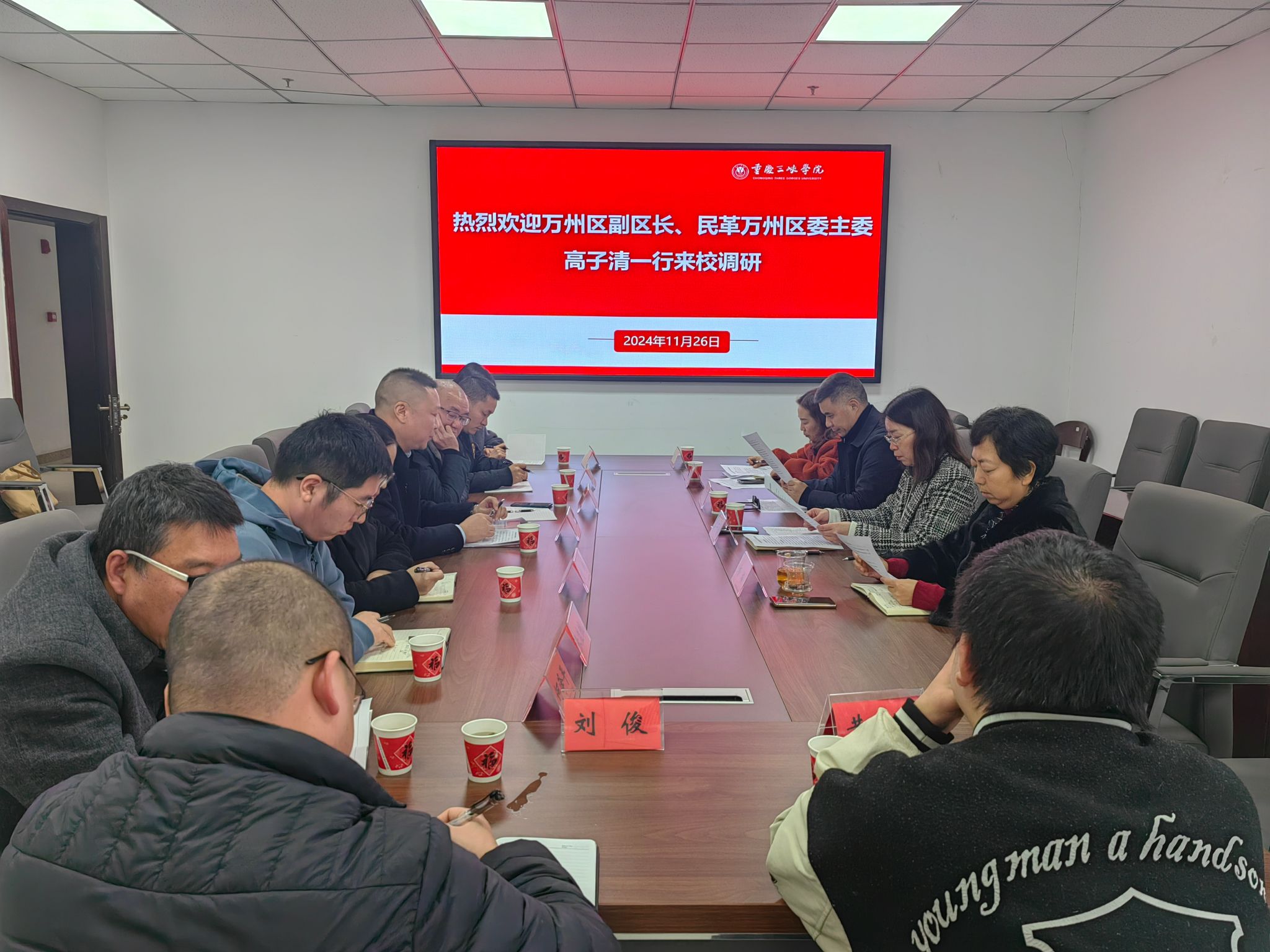 11月26日,万州区政府副区长、民革万州区委会主委高子清、民革万州区委会专职副主委任晓君一行来校调研。学校党委副书记、院长李敬,党委常委、统战部部长杨梅出席调研座谈,民革KY开元集团官网支部9名党员代表参加座谈。