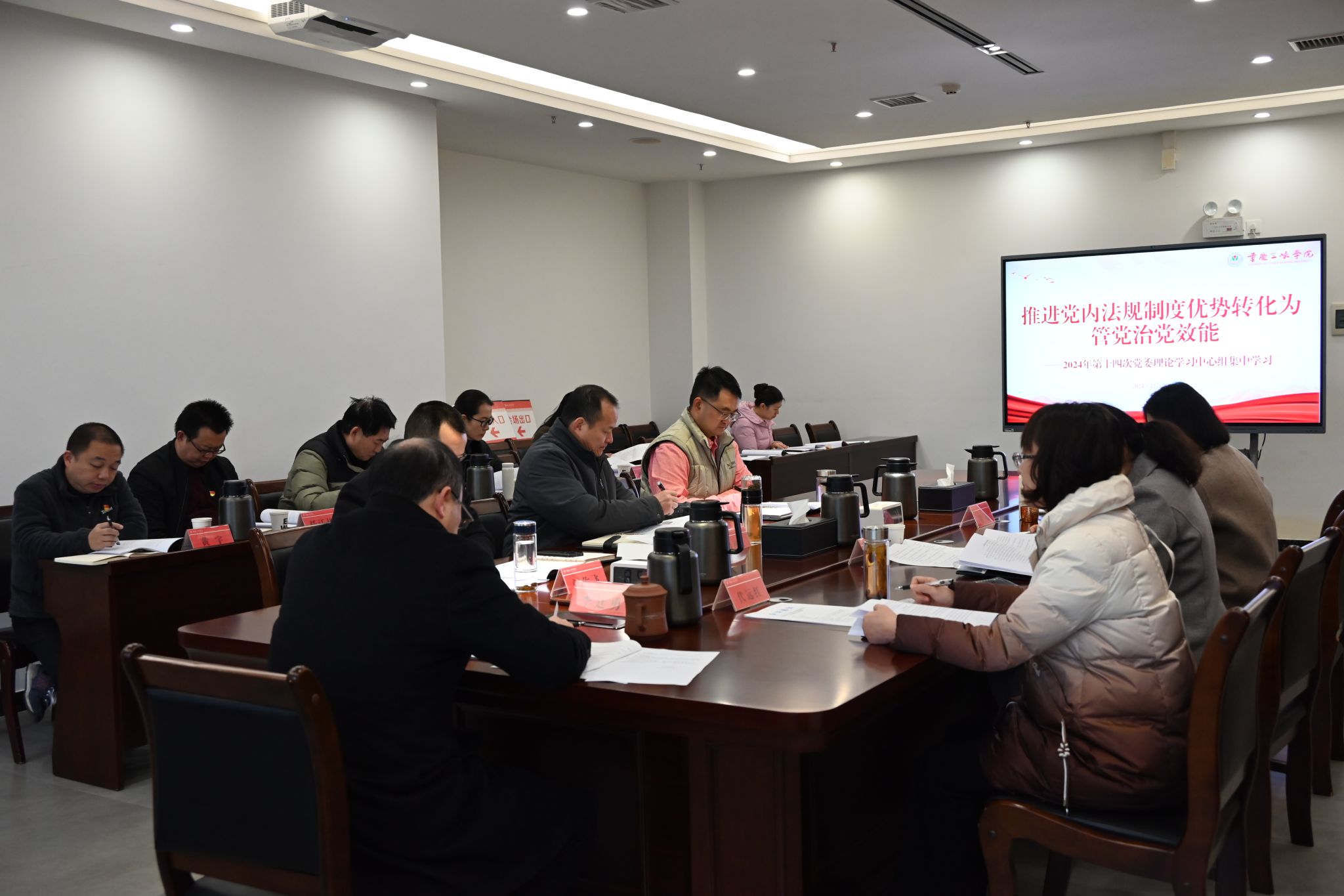 12月26日,学校党委理论学习中心组组织召开专题学习会,集中学习党内法规制度,研讨如何推进党内法规制度优势转化为管党治党效能。党委常委、相关校领导、党口部门负责人以及相关二级学院党总支书记参加学习,党委书记李廷勇主持学习并讲话。