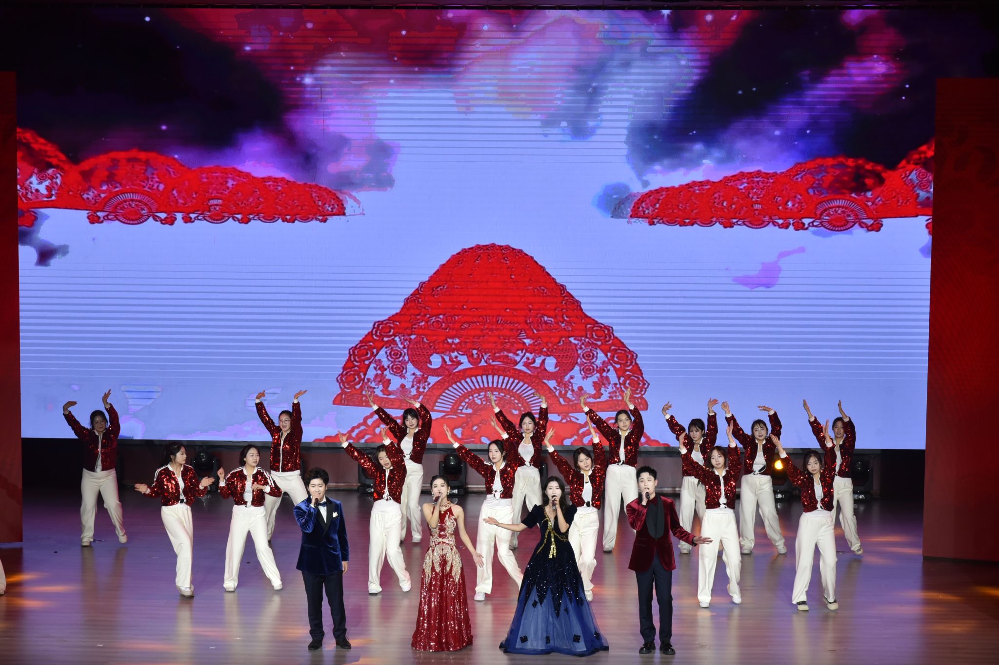 歌舞《相亲相爱》唱出了学校过去一年中励精图治,奋发图强在教育教学、科学研究、团学育人、对外交流、管理服务等方面取得高质量发展成绩。学校面貌日新月异,各项事业蒸蒸日上。