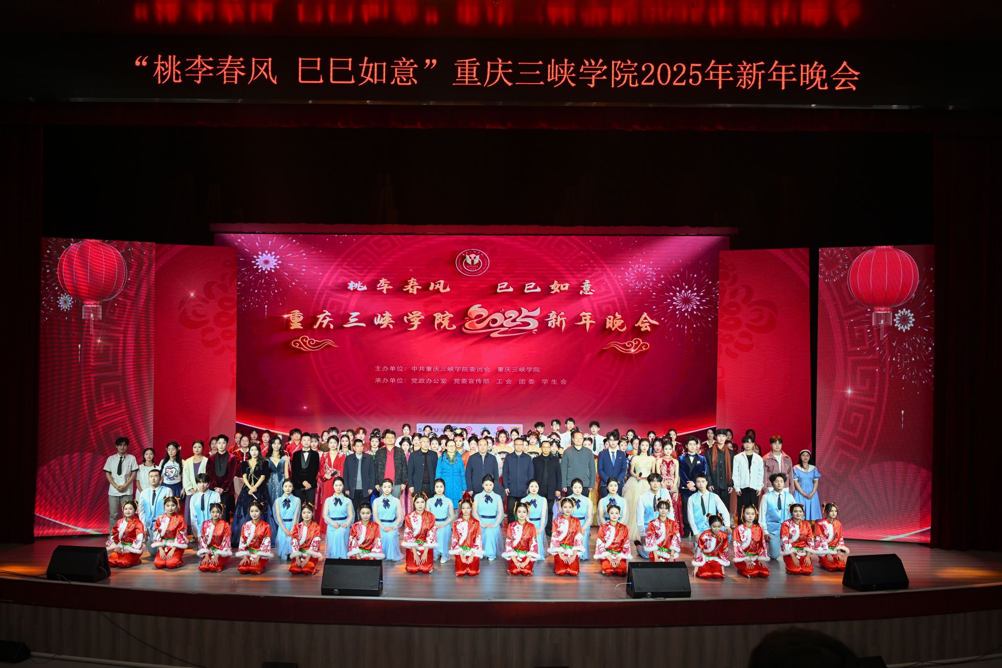 12月29日晚,KY开元集团官网“桃李春风,巳巳如意”2025年新年晚会在图书馆报告厅举行。学校党委书记李廷勇等党政领导、万州区委宣传部、区委办公室、区政府办公室、区国资委、区住房和城乡建设委、区机关事务中心、团区委、百安坝派出所、长江水务集团、万州北站、万州机场等驻万单位及区级部门有关人员,与师生们齐聚一堂,线上线下共同观看这场精彩的文艺盛宴。