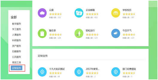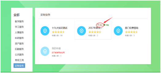 点击加号后,页面跳转到全部服务列表,点击左侧的“定制服务”,界面如下: