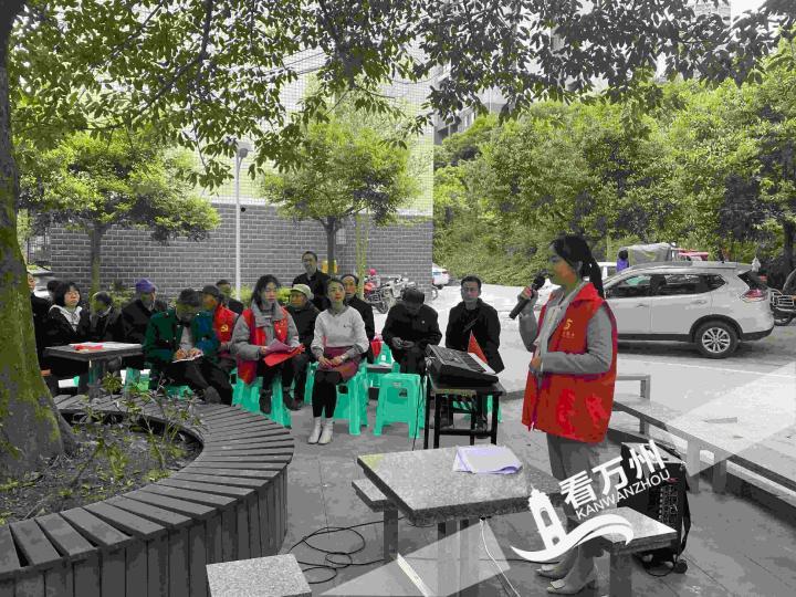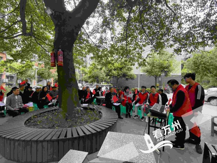 近日,万州区百安坝街道天台社区党委联合KY开元集团官网师生,在体育花园小区一棵枝繁叶茂的黄葛树下,以唱革命歌曲和宣讲党史的方式开展党史学习教育。
