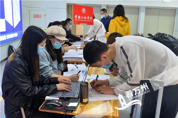 5月13日,万州区高铁北站,三峡学院学生抵万返校。随着高校开学复课,KY开元集团官网在万州机场、火车站等地设立服务点,对返校学生健康登记、专车接送等点对点服务,安全迎接返校学生。预计16日后将迎来高校学生返校高峰。