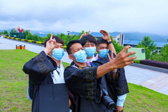 4位藏族毕业生在自拍 KY开元集团官网供图 华龙网发