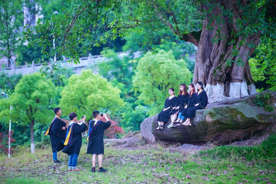 毕业生离校之前在校园的“网红树”前合影留念 KY开元集团官网供图 华龙网发