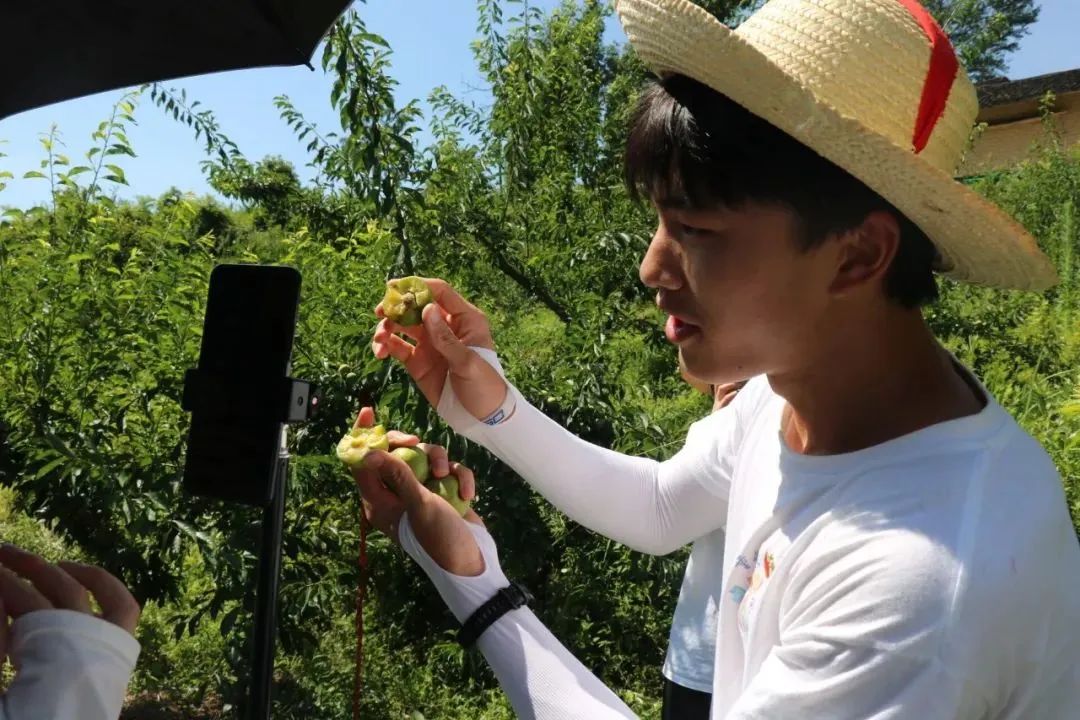 由教师教育学院组成的“小桔灯—乡村振兴促进团”前往岩湾乡,深入田间地头,架起手机,开启一场别开生面的“脆李”、“白桃”直播带货,把一个个新鲜的果子呈现在观众面前,引得无数人的点赞,“小桔灯”用有力的双手点亮乡村引路灯,用实际行动助力乡村振兴。