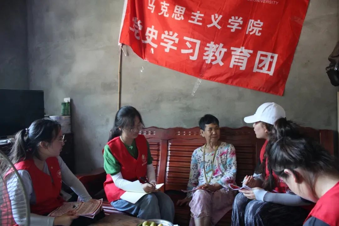 由马克思主义学院组成的“党史学习教育团”以党史宣讲和入户调研主要方式,在走访中了解村民们对于党史知识以及党的最新政策和理论的掌握情况;在走访中将党的方针和政策及时传达给村民,将党的政策讲深、讲透,让群众更加相信党、更加依靠党、更加热爱党。