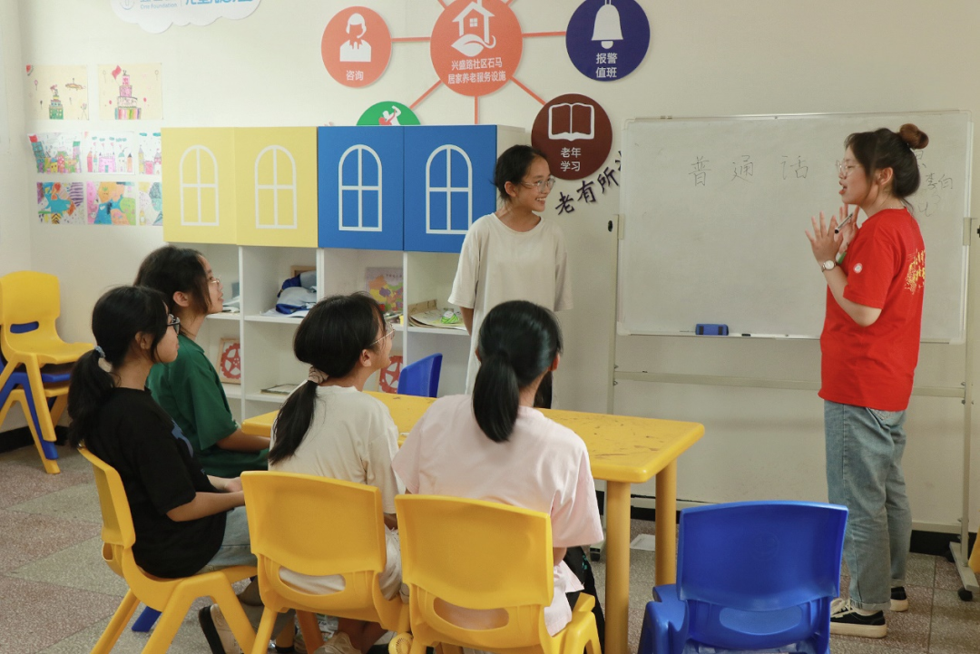 由文学院组成的“青心向党,普语同行—乡村振兴促进团”走进兴盛社区青少年之家开展普通话培训课程,为孩子们讲述什么是普通话、为什要说普通话,在课上组织进行诗词朗诵、绕口令、绘画等活动,激发了孩子们对于学习普通话的兴趣,推动普通话普及化发展。