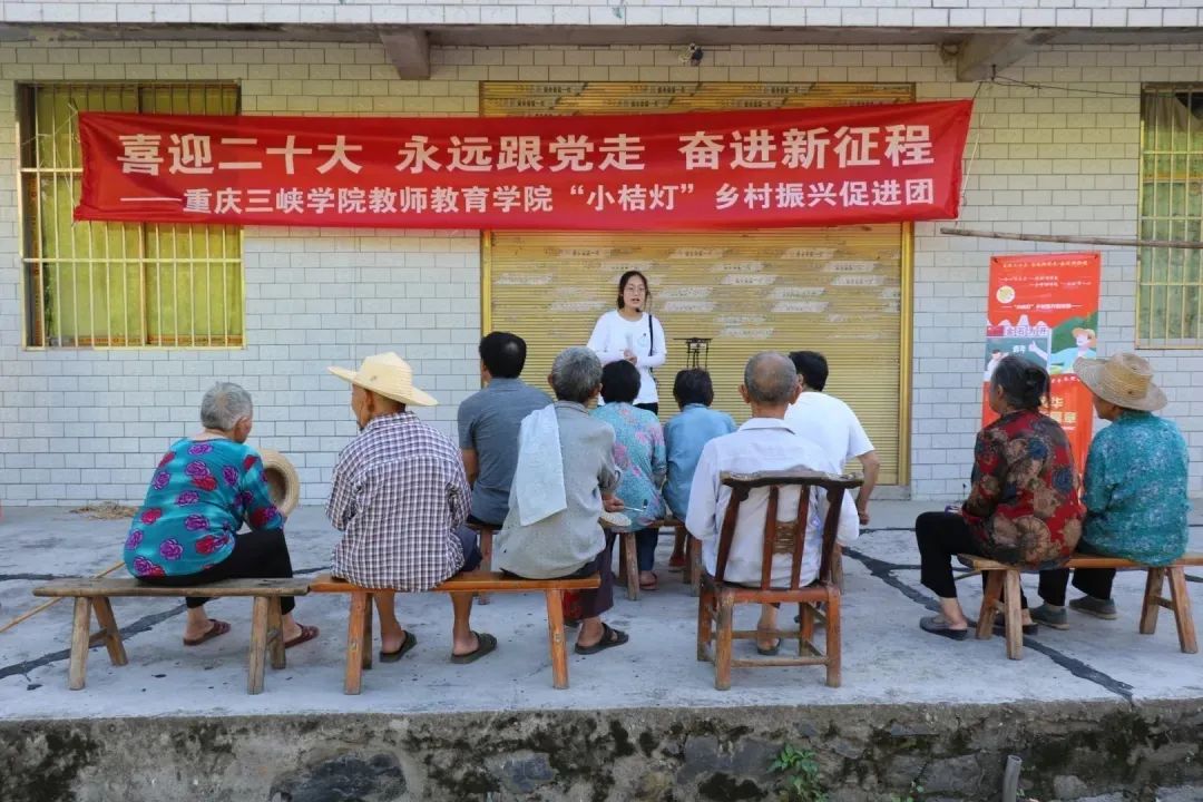 由教师教育学院组成的“小桔灯—乡村振兴促进团”积极开展党的理论政策宣讲,向村民们解读党的理论和政策,让党的理论政策飞入寻常百姓家。