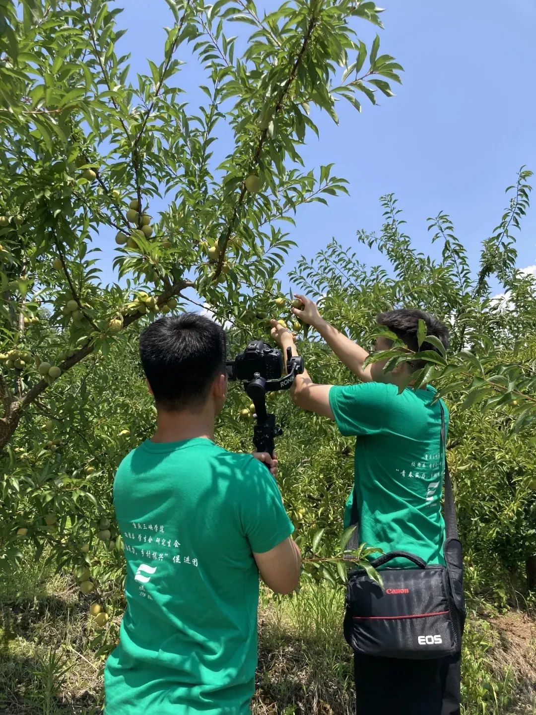 由校团委、学生会、研究生会组成的“理论普及宣讲团”走进腊烛村果园参观并拍摄相关宣传短片,向更多人宣传翠冠梨的历史、味道,扩宽翠冠梨的销售渠道,打造乡村特色产业,助推乡村振兴深入发展。