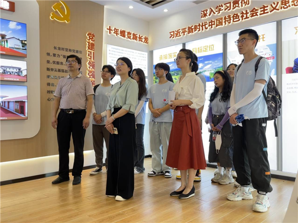 后在长龙村村书记邓智辉的带领下,大家来到了长龙村党建展馆参观,并由长龙村副村书记张清华给大家讲述长龙村“蝶变”之史。长龙村全面贯彻党的二十大精神,在党组织坚强领导下,于乡村振兴的浪潮中不断蝶变成一个优秀的“新长龙”,成为市级美丽宜居乡村,区级乡村振兴示范村。