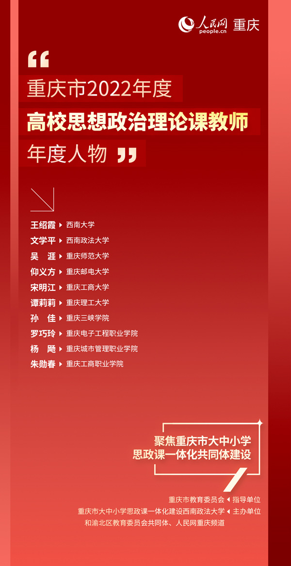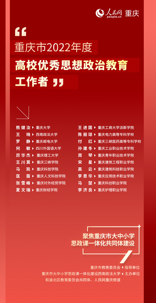 附:重庆市2022年度高校思想政治工作“年度人物”名单