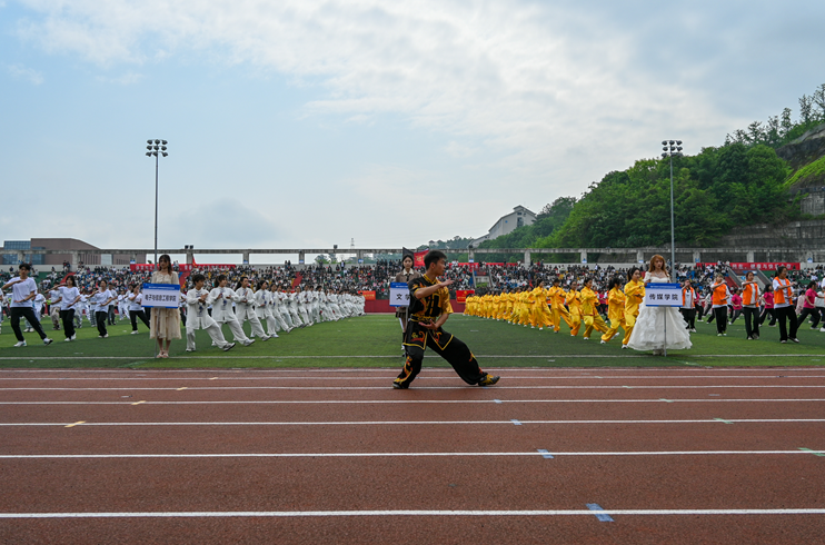 文艺表演环节,舞蹈《开门红》《摆手舞》动感开场,热情氛围迅速拉满;《武术空竹舞破苍穹》《太极拳比赛》相继亮相,既展示了对中国传统文化的传承,也倡导了更加多元的健康运动方式;《啦啦操》、《龙腾狮跃耀三峡》活力来袭,力与美的融合,展现了当代青年学生的精气神。最后,一首大合唱《我和我的祖国》,则表达了三峡学子对祖国的真挚热爱。