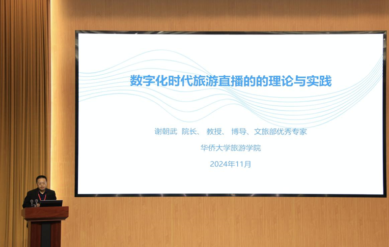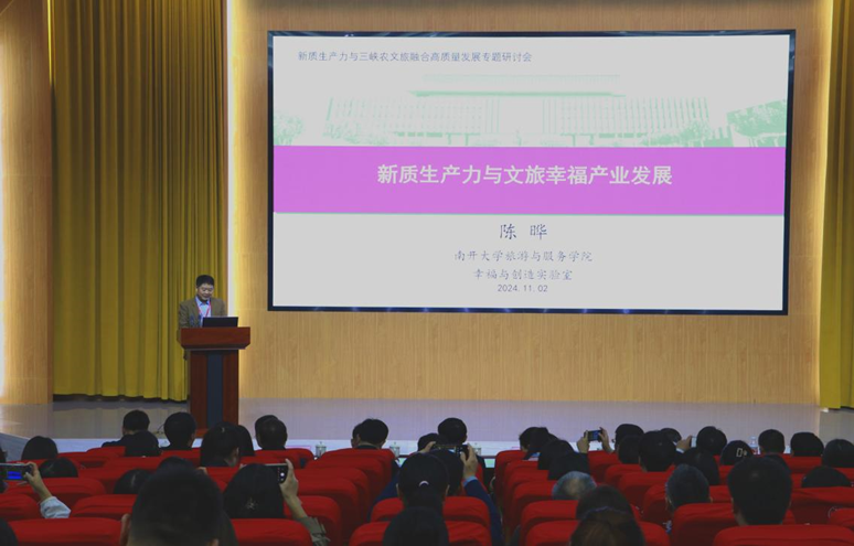 在随后的主旨演讲阶段,陈晔、孙九霞、谢朝武、阚如良分别以《新质生产力与文旅幸福产业发展》《媒介与地方视角下的数字文旅场域再造》《数字时代旅游直播营销的理论与实践》《农文旅融合振兴乡村的逻辑与规律》为主题做了精彩报告,为与会人员呈现了一场场思想碰撞与智慧交融的学术盛宴,不仅深刻剖析了当前文旅产业面临的新机遇与挑战,还从理论与实践的双重维度,为三峡农文旅融合的创新发展提供了宝贵的参考。