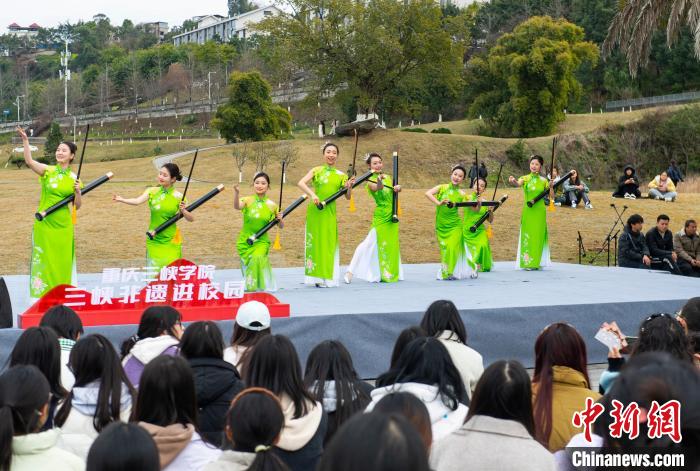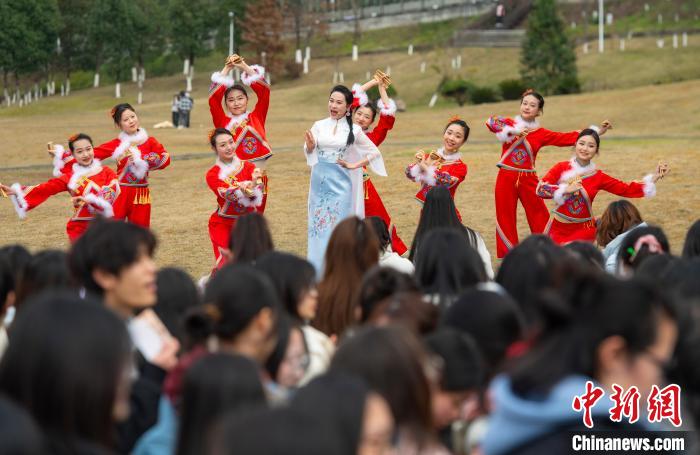 3月6日,KY开元集团官网第二十四届大学生文化艺术节开幕式暨三峡非遗进校园活动举行。金钱板、四川竹琴、四川清音等非遗表演吸引大学生的目光。图为曲艺表演艺术家表演金钱板。冉孟军 摄