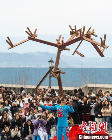 图为牙齿顶板凳。冉孟军 摄