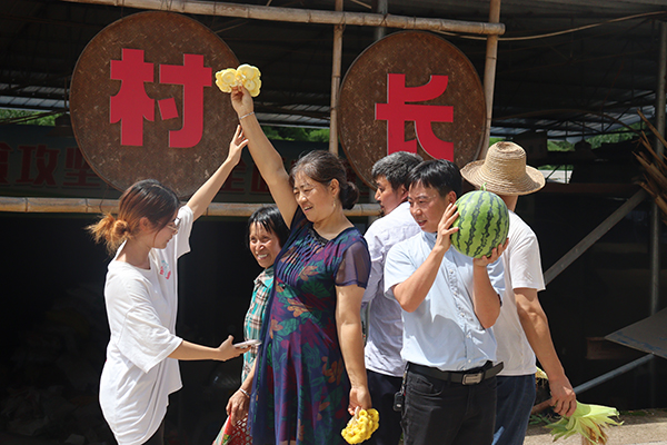 实践团师生发挥专业优势,为万州区龙驹镇灯台村村民搭建抖音帐号,帮助西瓜销售。