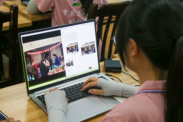 在万州区大周镇,实践团成员运用AI技术为镇政府珍藏的老照片进行修复和动态化处理。