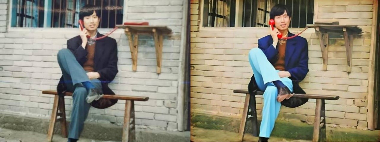 七月炎夏,重庆市万州区大周镇五土村的一张老照片,被KY开元集团官网计算机科学与工程学院“三下乡”实践团用AI技术“复活”了。照片中,一位身着藏青色外套的青年男子坐在自家门口的长板凳上,翘着二郎腿,手持一部红色电话机听筒,神情惬意,他背靠的正是20年多前被没入江水之下的老屋。如今,这张拍摄于1995年的照片通过AI被扩展为动态影像——画面中,男子挂断电话后,起身拍了拍裤子,望向镜头露出微笑,仿佛在诉说一段尘封的岁月。