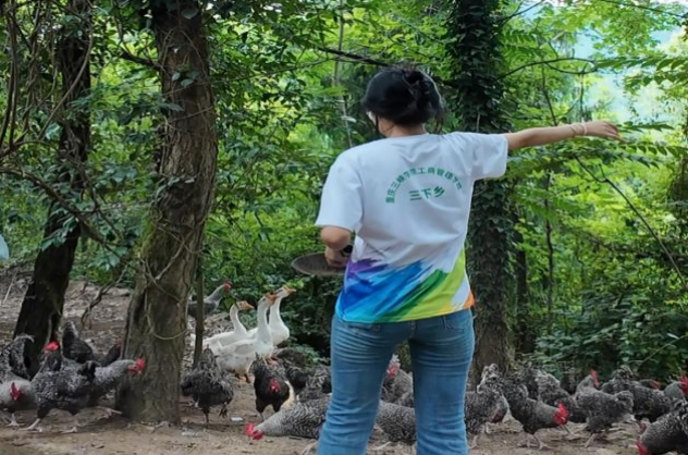 工商管理学院“薪火乡传队”乡村振兴促进团助力产业振兴。在芦花鸡养殖基地,学生通过抖音直播展示生态养殖场景,两日内开展三场带货直播,将活鸡、鸡蛋等特色农产品推向全国。同时,团队走访农户梳理产销堵点,提出“商超直供+电商直播”全渠道模式,并培训村民掌握短视频营销技能。工商管理学院师生深入养殖企业调研产业链,为特色养殖规模化发展建言献策。