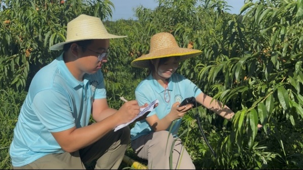生物与食品工程学院“生工筑梦,科技兴农”乡村振兴促进团深入鸿凤村桃园,直面生产痛点。胡立盼博士带领学生运用土壤湿度传感器、虫情测报灯等设备,构建“数字灌溉+智慧防控”体系,破解浇水周期盲目、病虫害“盲打”等五大难题。师生们采集土壤样本、分析营养数据,提出无人机植保、智能水肥一体化等方案,推动传统果园向“数字农业”转型。在蔬菜大棚中,团队还通过生物防治技术优化作物管护,为农户量身定制绿色种植手册。