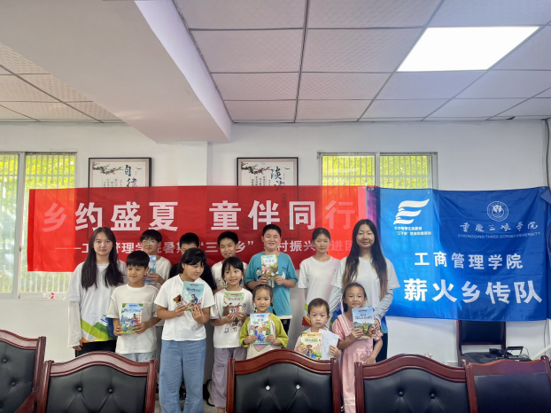 工商管理学院“薪火乡传队”乡村振兴促进团将关怀融入乡村肌理:在梧桐村开设儿童辅导课堂,通过心理健康讲座、非遗扎染体验、安全教育活动守护童心;夜间露天电影放映丰富村民文化生活。学生党员聆听老党员王安学讲述乡村变迁史,感悟振兴足迹;调研小组走进老人家中记录人生故事,为乡村发展留存人文档案。