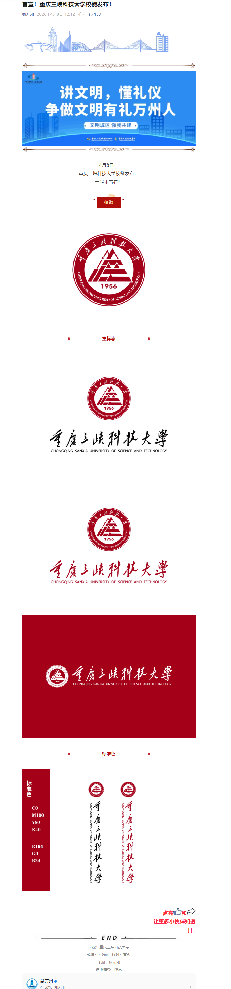 下一条:2026年4月8日《看万州 视频号》:重庆三峡科技大学今天正式揭牌!